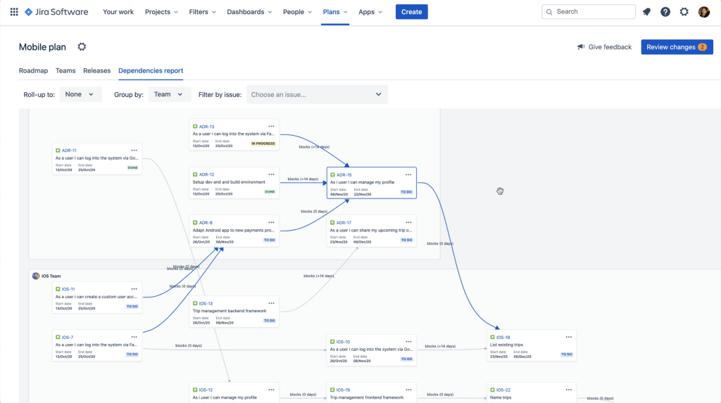 As different teams work collaboratively to deliver large projects, setting dependencies between tasks is crucial during planning and scheduling processes. With Advanced Roadmap, you can get ahead by assessing dependency risks across multiple teams before proceeding to issues. Doing so will give you a clearer picture of dependent tasks that may potentially cause failure to meet deadlines and determine task sequence accordingly.