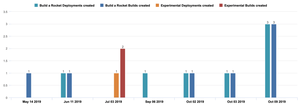 Deployment to production adalah saat ketika pelanggan mulai menggunakan fitur yang mereka butuhkan dalam menanggapi peluang pasar. Mereka mengharapkan fitur tersebut tersedia pada waktu yang tepat. Ketika kematangan proses DevOps terus berkembang, maka frekuensi deployment versi baru untuk produksi juga harus menjadi lebih cepat. Jika Anda memiliki proses yang memungkinkan untuk men-deploy fitur baru untuk produksi kapan saja, tanggung jawab untuk menentukan jadwal deployment dapat dihapus dari departemen TI dan diserahkan kepada tim bisnis. Dengan eazyBI, Anda sekarang dapat menampilkan informasi mengenai Bamboo Build dan Deployment serta frekuensi pada timeline.